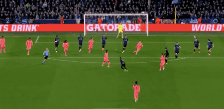第16分鐘,巴薩除了什琴斯尼外,全部壓過中線,布魯日反擊過程中連續(xù)一腳傳球,巴薩防線再次告破,特勒索爾迪助攻博爾赫斯破門,布魯日再次取得領(lǐng)先。