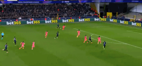 第22分鐘,布魯日解圍擊中隊友反彈奔向球門,還好被門將沒收